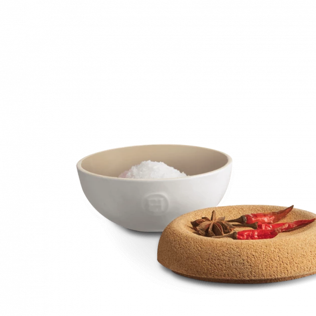 La céramique de ce pot à sel, associée au couvercle en liège, participe à la régulation du taux d’humidité. Cela empêche notamment les grains de sel ou de fleur de sel de s’agglomérer.