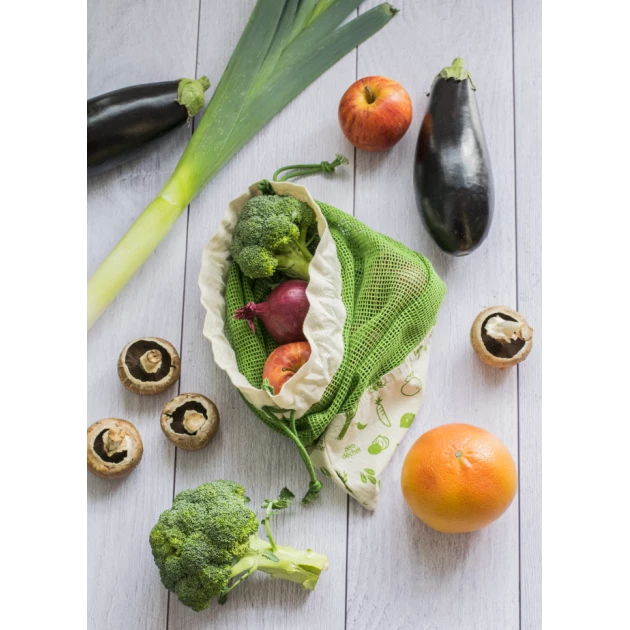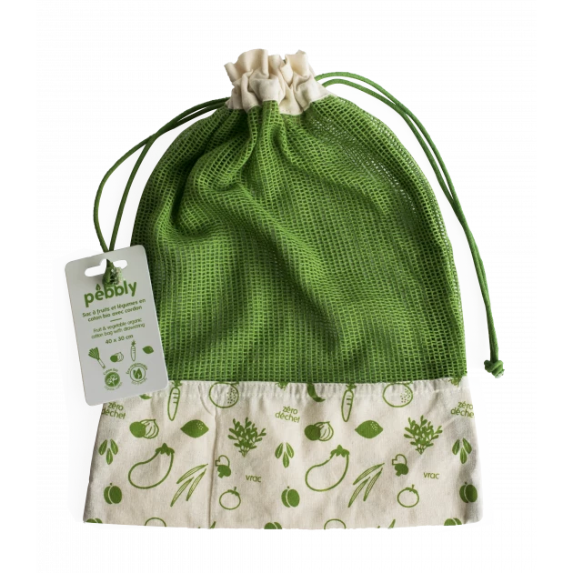 Que ce soit pour vos courses, le transport ou la conservation, optez pour le sac à légumes coton bio vert Pebbly pour définitivement dire au revoir au plastique et bonjour au zéro déchet !